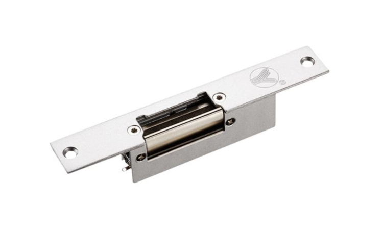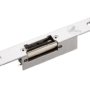 Electromechanical latch with a holding force of 500 kg. Electrically locked. DC12V power supply. Consumption 200mA. Dimensions 160x25x31mm.