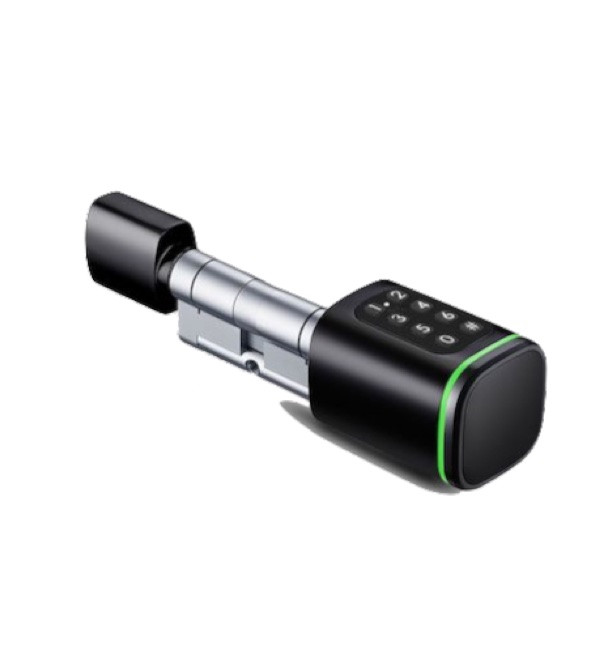 Smart cylinder with RFID-card, code, smartphone control via bluetooth. The cylinder is installed instead of the old euro-cylinder of any lock. Replacement and setting is done in 5 minutes using one screwdriver.