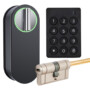 Smart motor-lock + wireless keypad for mounting on euro-cylinder. Easy to install on any plastic, aluminium, wooden or metal door with inward opening. Lock supports wireless door sensor for auto-close mode. Easy installation without any drilling or special tools.